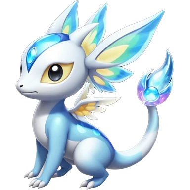 Angelic Divine Bioluminescent Translucent Luminescent Diaphanous Shiny Colorful Meloetta-Latias-Koraidon-Peppercat-Wargreymon-Victini-Protogen-Fakémon-fusion-hybrid-creature emoji
