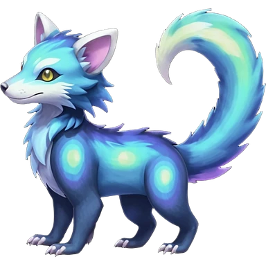 Abyssal Nebulae Iridescent Diaphanous Translucent Colorful luminescent shiny iridescent glowing Trico-Luxray-Sergal-Furret-Ferret-Wolverine-Vernid-furry-fursona-fusion-Fakemon-animal-hybrid-creature, full body emoji