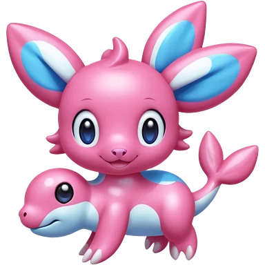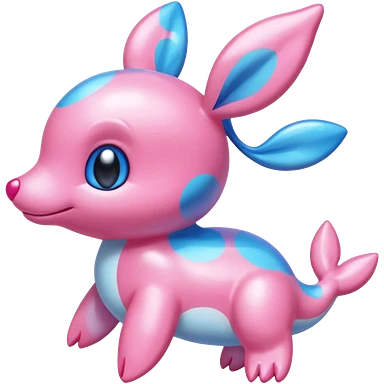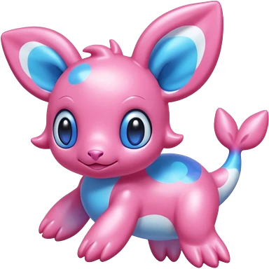 Iridescent Bubblegum-Pink Gloss-Coated Smooth Cute Aquatic Popplio-Sylveon-hybrid-creature (full body) emoji