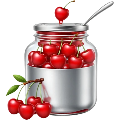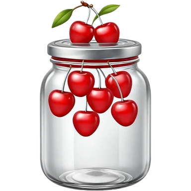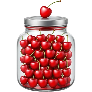 Realistic glass jar with silver metallic lid filled with maraschino cherries inside of it. emoji