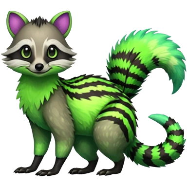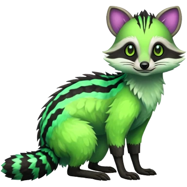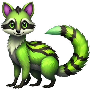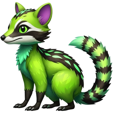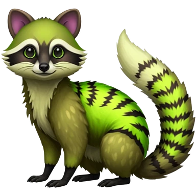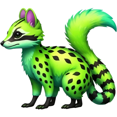 Iridescent Neon Green Civet-Tanuki-Numbat-Sergal-fusion-hybrid-animal-creature, full body emoji