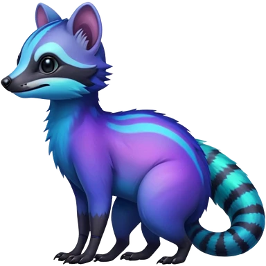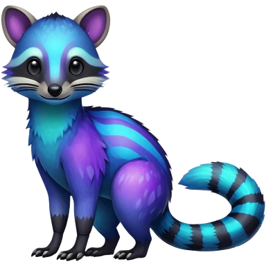 Iridescent Neon Green-Cyan-Blue-Purple-gradients Civet-Numbat-Sergal-fusion-hybrid-animal-creature, full body emoji