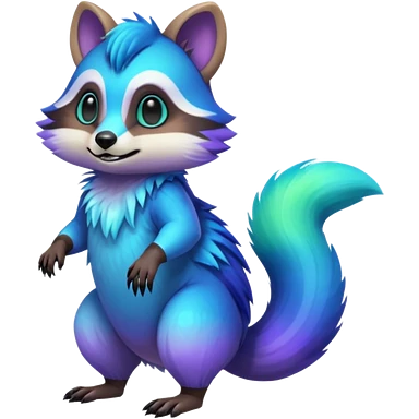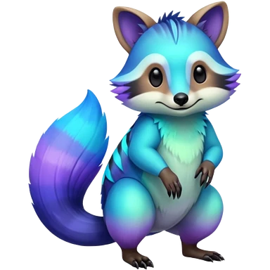 Iridescent Neon Green-Cyan-Blue-Purple-gradients Tanuki-Numbat-Sergal-fusion-hybrid-animal-creature, full body emoji