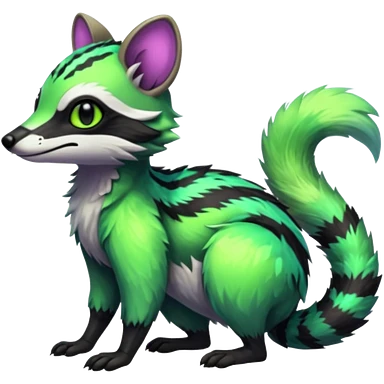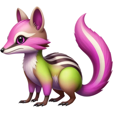 Green-Magenta-gradients Minccino-Emolga-Numbat-Sergal-fusion-hybrid-animal-creature, full body emoji