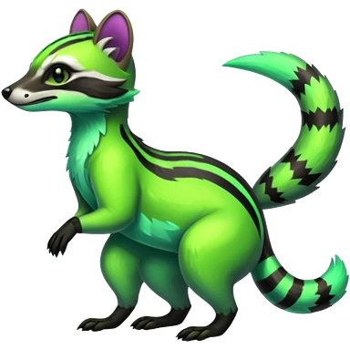 Iridescent Neon Green-Magenta-gradients Minccino-Numbat-Sergal-fusion-hybrid-animal-creature, full body emoji