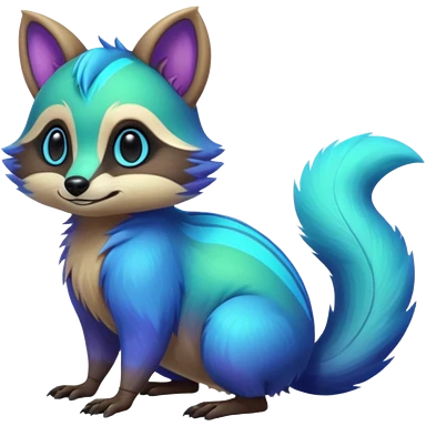 Iridescent Neon Green-Cyan-Blue-Purple-gradients Minccino-Numbat-Sergal-fusion-hybrid-animal-creature, full body emoji