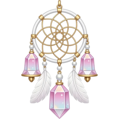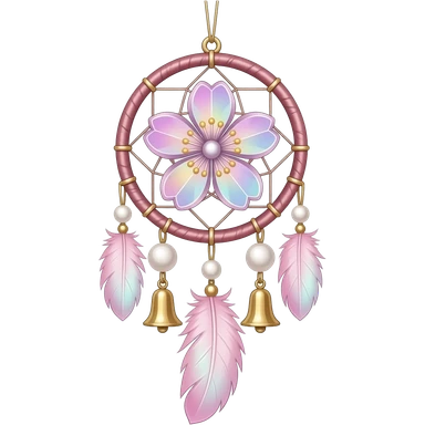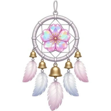 Hanging Iridescent pastel pink sakura crystals white-pearly suncatcher dreamcatcher with bells and feathery ornament emoji