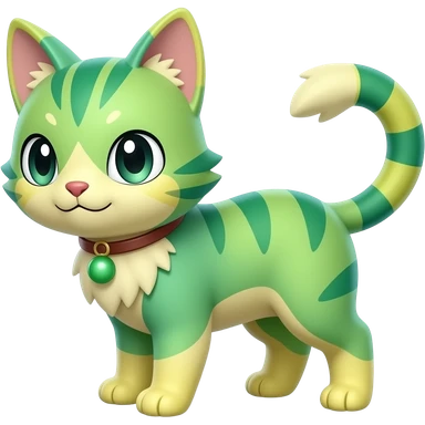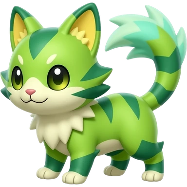 Iridescent Green and Yellow Electrike-Sprigatito-Bobcat-Amaura-Aurorus-Shiny-glorp-cat-fusion (full body) emoji