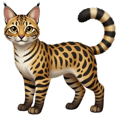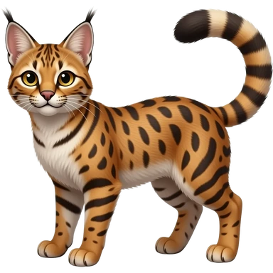 Iridescent Tribal-Patterned vernid-Civet-Genet-Bengal-Cat-Bobcat-Caracal-Serval-animal-hybrid-mix fantasy creature LiLaiRa Kamirah Falvie whiskers paws full body gradient stripes tufted tail feline emoji | AI Emoji Generator
