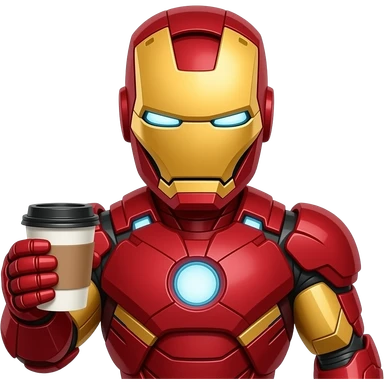 Iron man with a suit on and coffee emoji