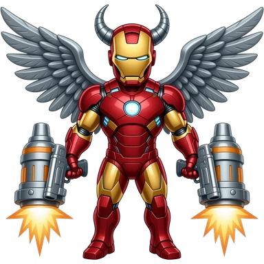 Iron man full body with iron wings iron horns iron guns iron jetpack iron first iron blast emoji