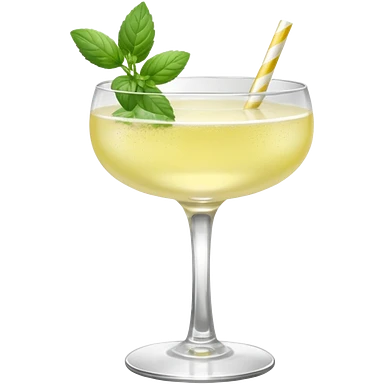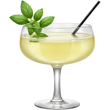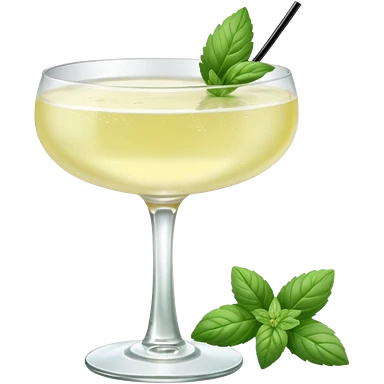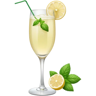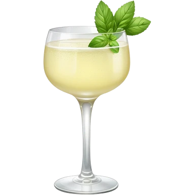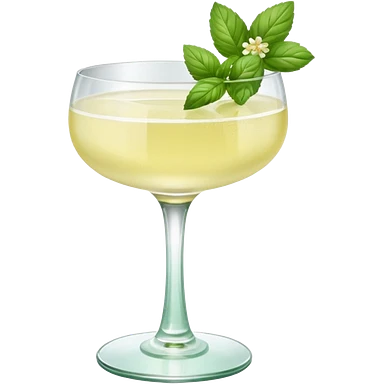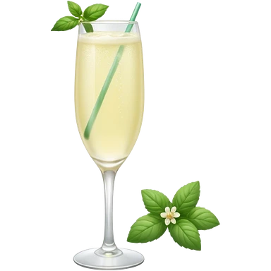 French 75 cocktail with subtle elderflower color and mint and basil garnishes emoji