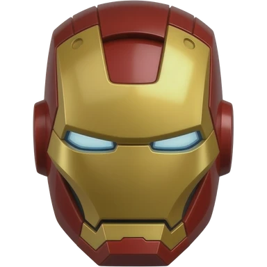 Iron Man helmet face, red and gold metal mask with glowing eyes emoji