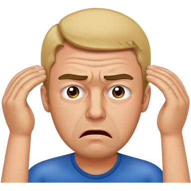 An overwhelmed man touching his forehead with his hands emoji