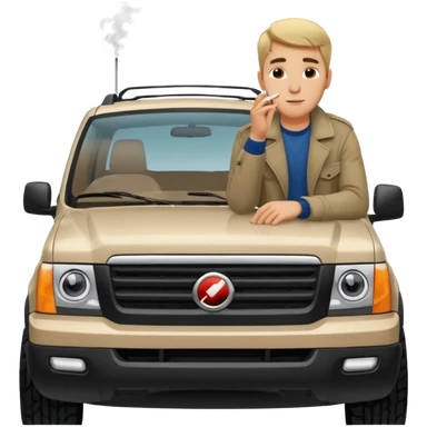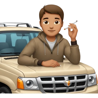 a hansome Leaning on the hood of his SUV with a cigarette emoji