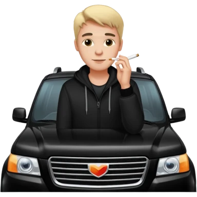 a hansome Leaning on the hood of his black SUV with a cigarette emoji