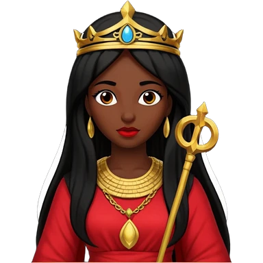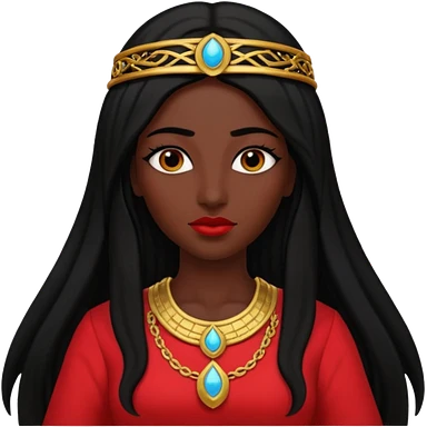 Isis, Mother of Gods from Gods and Goddesses with long black hair, red outfit emoji