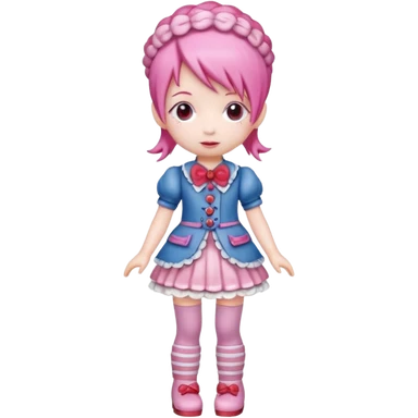 Isolated detaile illustration modern raspberry torte doll figurine full body with pink hair and a pink hairband standing emoji | AI Emoji Generator