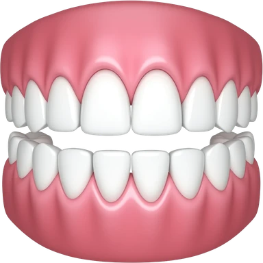 two rows of teeth, upper and lower teeth, teeth shaped like sharp triangles, gapped teeth with visible spaces between each tooth, cartoon style, clean white teeth with slight shine, pink gums, simple kawaii emoji design, transparent background, front view centered emoji