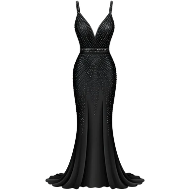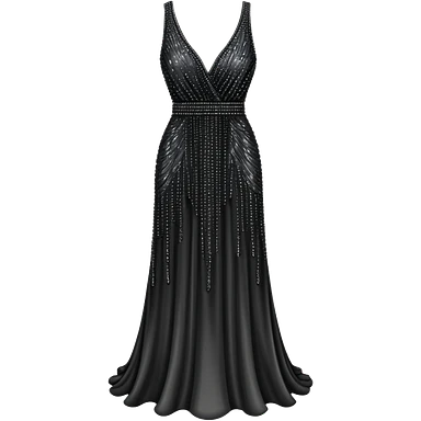 black beaded v-neck gown, isolated hanging, mid-length emoji