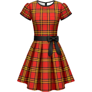 No human figures, Women's MacQueen' Tartan Mini Dress in Red/Black/Yellow, crew neck, cap sleeves and a handkerchief hem. Isolated rendering emoji