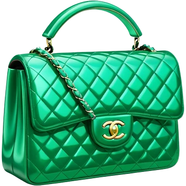 Isolated 3d rendering, futuristic ultra sparkly emerald green Chanel bag emoji