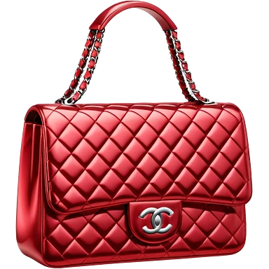 Isolated 3d rendering, ultra sparkly red metallic foil appearance, Chanel bag, 14k gold details emoji