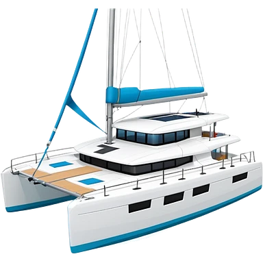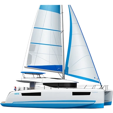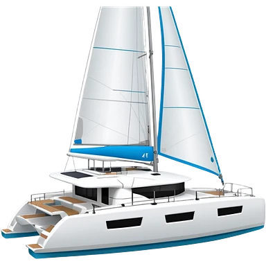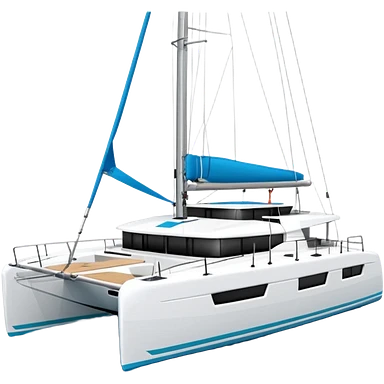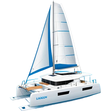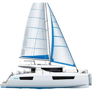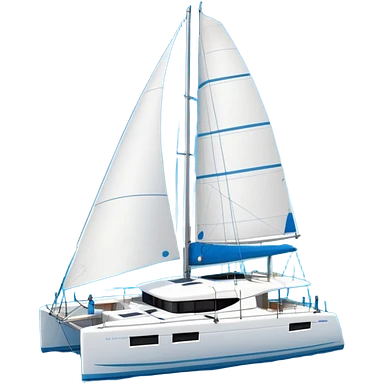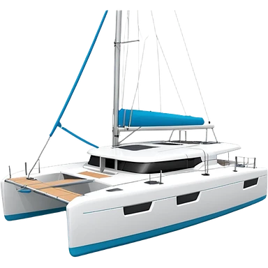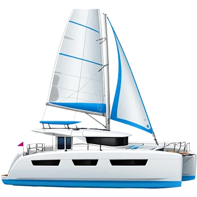 A lagoon 42 catamaran with no wording or letters on the boat. In a solid white background emoji