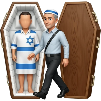 Israeli flag emoji walking in coffin emoji | AI Emoji Generator