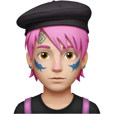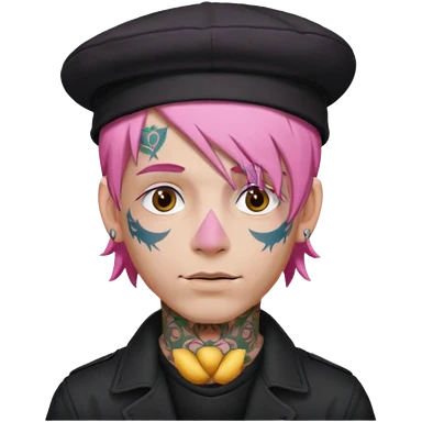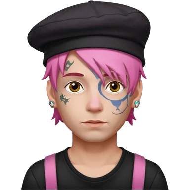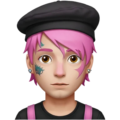 dark blue haired man curly hair and big earrings and and hat wearing emoji