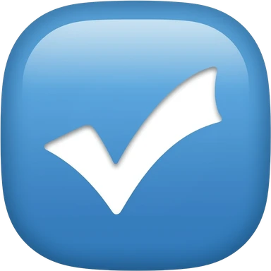 It is a small solid blue slightly rounded sale containing a white tick. emoji