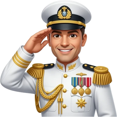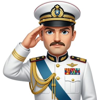 A highly decorated army general, wearing white, with a serious face saluting emoji