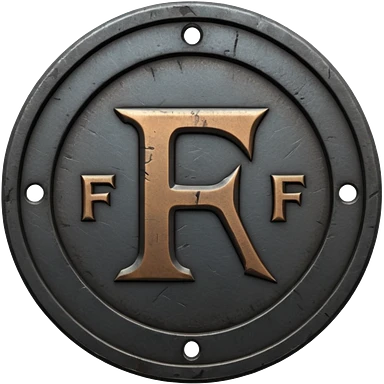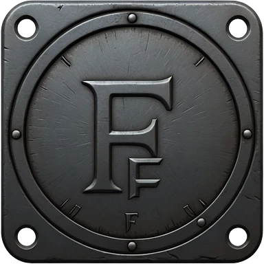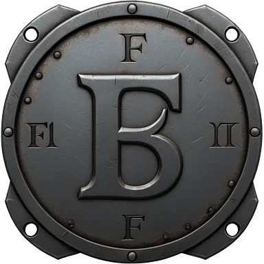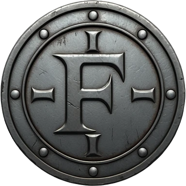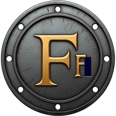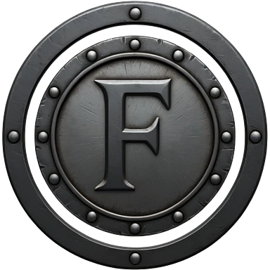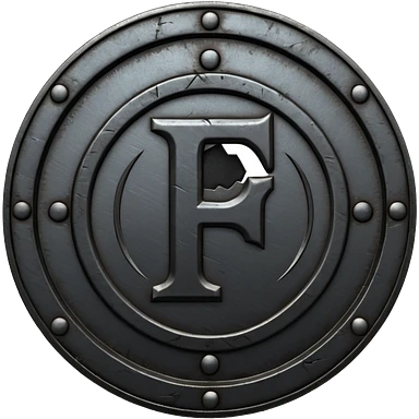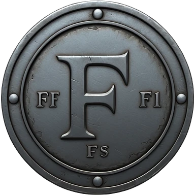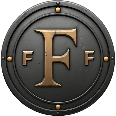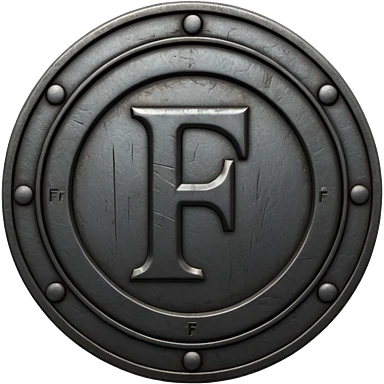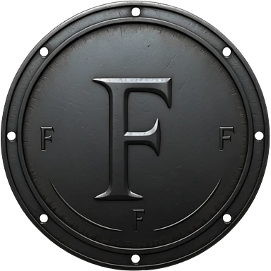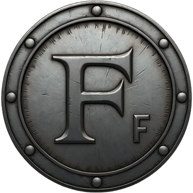 Minimal emoji, gothic metal coin made of black steel, engraved number f at the center, ancient industrial aesthetic, worn metal texture, no glow, no neon, flat emoji design, centered, transparent background emoji