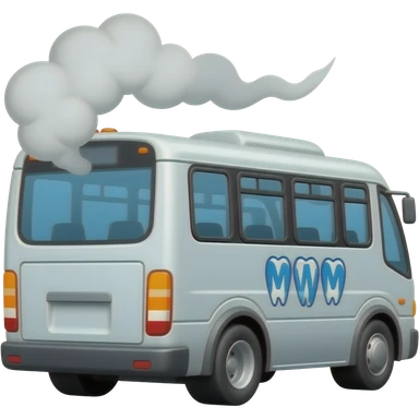 It's a Dental bus with smoke coming out of the back and it has a Mission Mobile Medical sign logo on the side that says MMM emoji | AI Emoji Generator