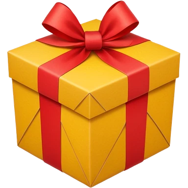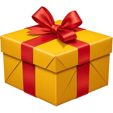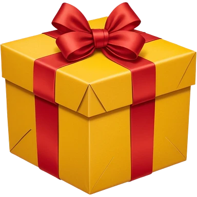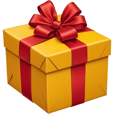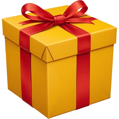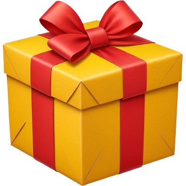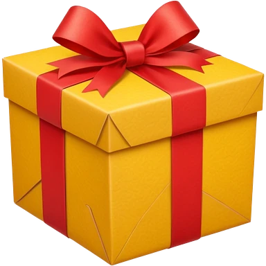 box with yellow wrapping paper and a length of red ribbon surrounding it on the bottom of the ground so you can see most of the box's cardboard emoji