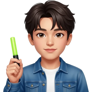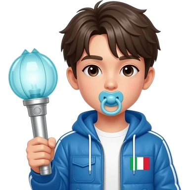 italian boy holding bikibong which is hilight stick of k-pop idol group newjeans emoji