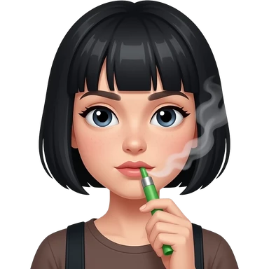 Girl with a Italian girl black bob brown eyes vaping a green Cali disposable vape emoji