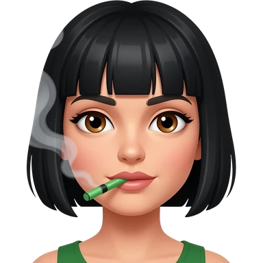 Italian girl black bob dark brown eyes vaping a green Cali disposable box vape emoji | AI Emoji Generator