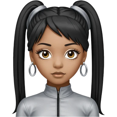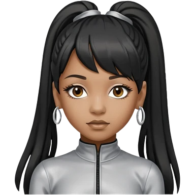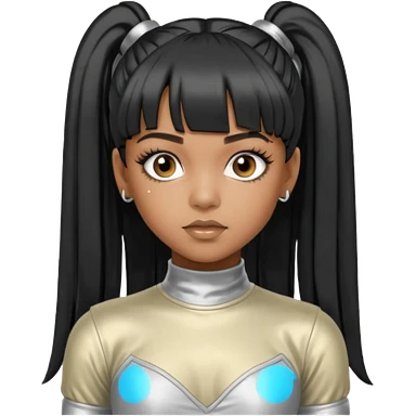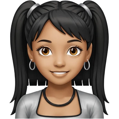 Left Eye from TLC with long black ponytail hair, silver outfit emoji