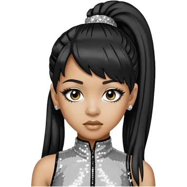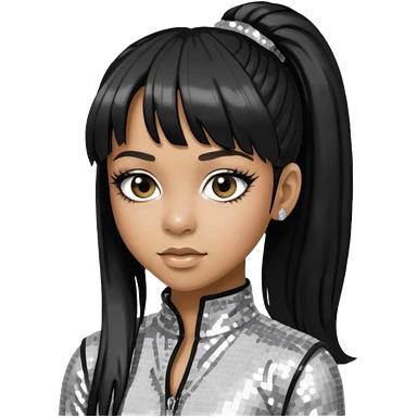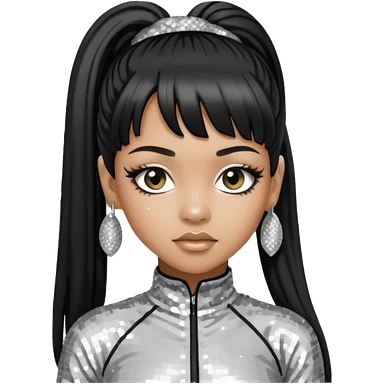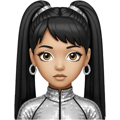 Left Eye from TLC with long black ponytail hair, silver sequin outfit emoji