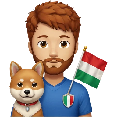 Italy flag shirt boy with beard brown reddish curly hair next to Shiba Inu emoji