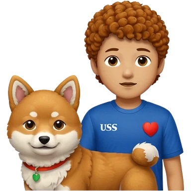 Italy shirt boy curly hair next to Shiba Inu emoji