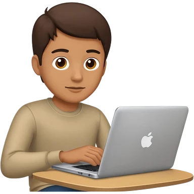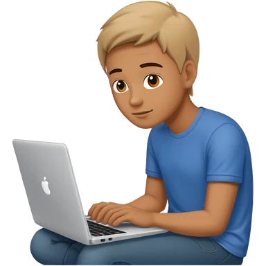 22 years boy having green eyes working on apple laptop emoji