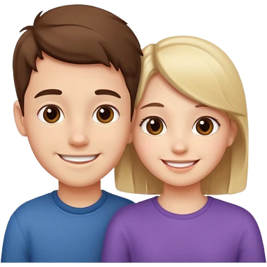 Male white emoji no hair , girl white emoji brown hair long , and an Aussie dog all together emoji