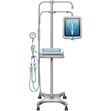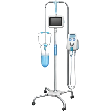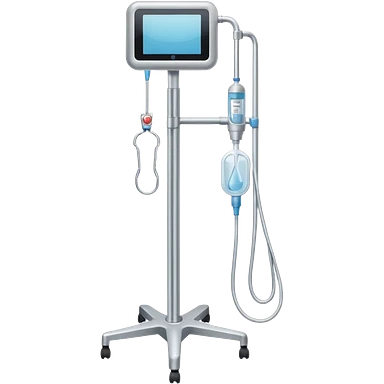 Hospital sleep laboratory room with patient in hospital bed connected to sleep monitoring equipment, nurse checking vitals, medical charts, and hospital IV stand emoji