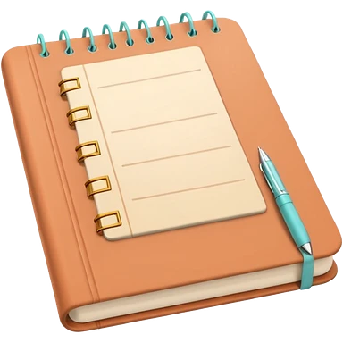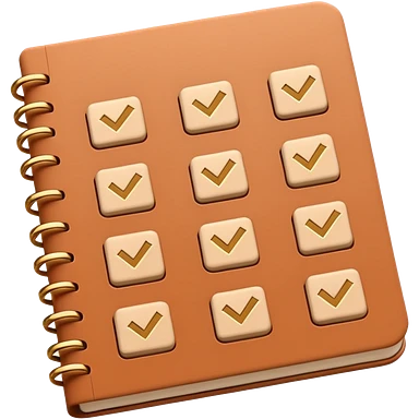 modern elegant planner with checkmarks emoji, 3D style, pastel terracotta, beige or pink and gold, clean design emoji
