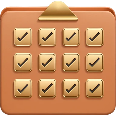 modern elegant planner with checkmarks emoji, 3D style, pastel terracotta pink and gold, clean design emoji