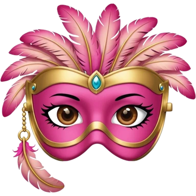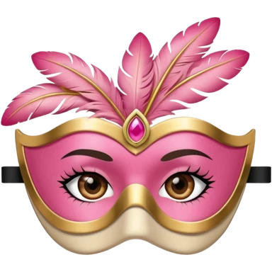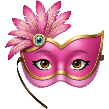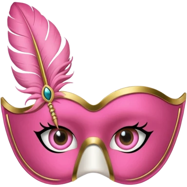 masquerade Pink eye mask with gold trim and small side feather. emoji