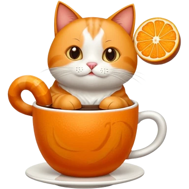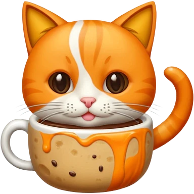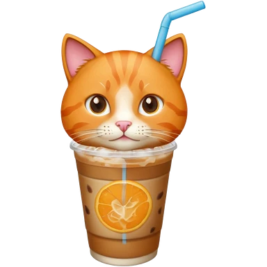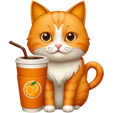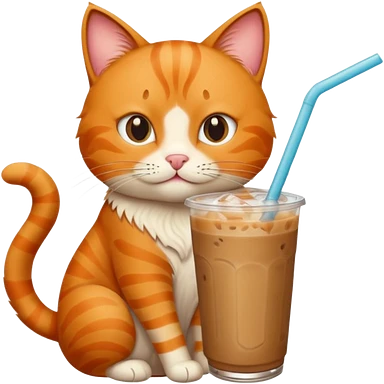 Gato naranja tomando café frio con un popote agarrándolo con sus patitas emoji
