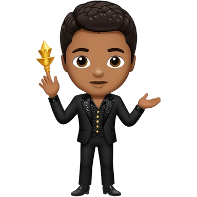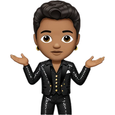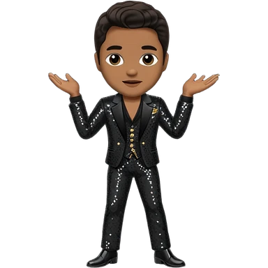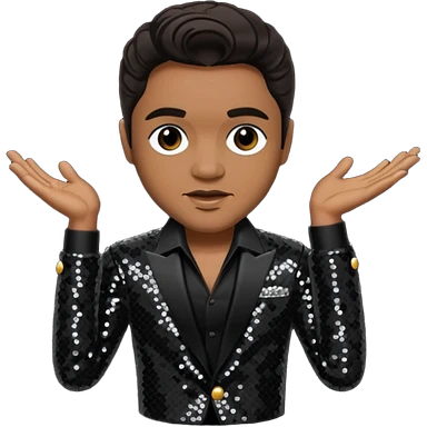 Jackie Wilson with dark brown hair, black sequin outfit emoji